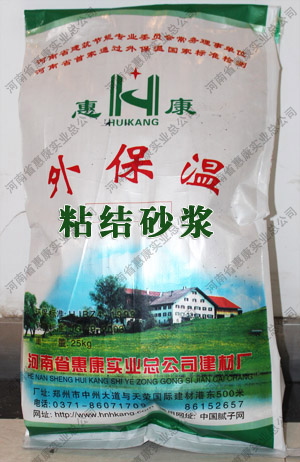 粘結砂漿產品說明: “惠康”外墻外保溫砂漿膠黏劑是一種灰色粉料,選用進口聚合物可再分散乳膠粉作為膠接基料,配以優質精選骨料組成的粉狀產品,按一定的比例加水混合即可使用。具有粘結強度高,使用方便等優點,屬綠色環保產品。產品特性:1、由優質進口可再分散乳膠粉、無…