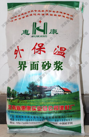“惠康”界面砂漿,是以進口可再分散乳膠粉作為膠接基料,配以優質骨料以及多種添加劑以科學配比組成的粉狀產品,對墻體和石材、竹子、木、水泥、灰鈣、石膏及有機材料有極強的粘結作用具有良好的耐水性、耐久性及柔韌性,能有效的防止墻面的龜裂。直接加水即可使用,屬綠色環保產品…