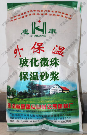 商品描述: “惠康”牌玻化微珠輕質砂漿,是采用膨脹玻化微珠材料生產的單組份干粉保溫漿料,具有優異的保溫隔熱性能和防火耐老化性能,不空鼓,不開裂,強度高,施工性好,可直接施工于干狀墻體上。本產品在材料上彌補了傳統的普通膨脹珍珠巖輕骨料保溫砂漿中的諸多缺陷和不…